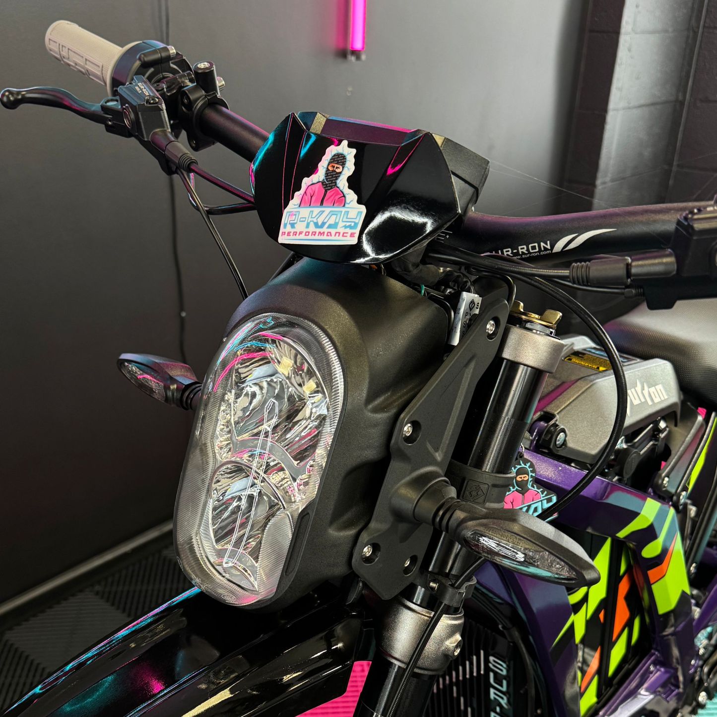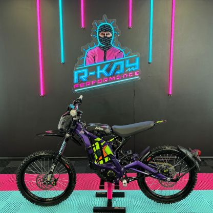 At R-Kay Performance, we're thrilled to offer the brand new Surron Light Bee X, a CE-approved UK-spec model. It's finished in Phantom Purple with eye-catching Green OEM stickers. With the latest 60v 40Ah Samsung Cell Battery, it delivers improved power and range, reaching speeds of up to 50mph. Plus, it comes with full 18 months warranty! It's an incredible package! 🎯