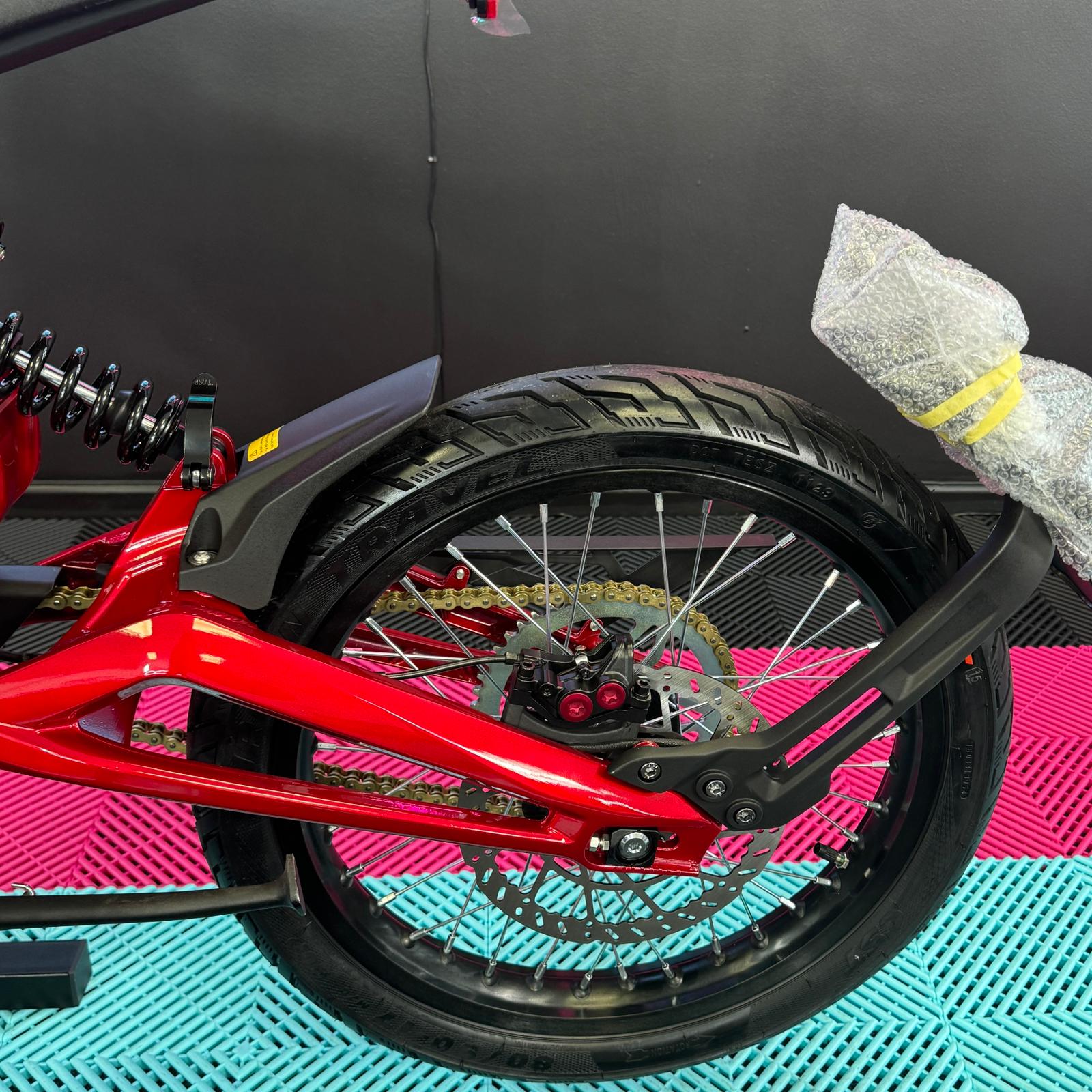 As an authorised Talaria Official Dealer, we are proud to offer the incredible 2024 Talaria Xxx, finished in Candy Red. This exceptional bike comes equipped with exciting new features, such as Supermoto Wheels, an extended rear fender, sleek black pegs, and vibrant red handlebars, amongst other enhancements. With its powerful 60v 40ah battery, it can reach top speeds of up to 47MPH!⚡️
