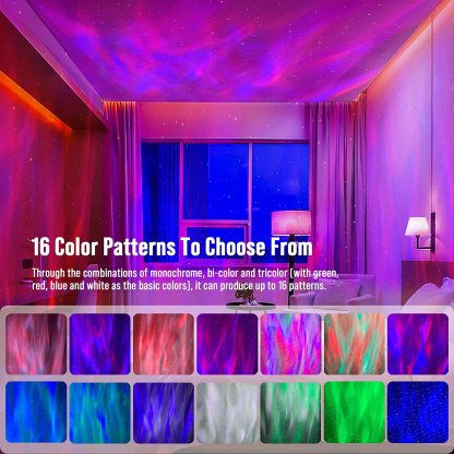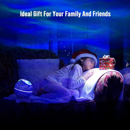 - 【4 in 1 Aurora Projector】- Integrate northern lights projector, night light, white noise and Bluetooth speaker, this star projector is more functional than others. Remove the projector cover, you can have individual colors, Red, Blue, Green or white; mix them up or all at once which up to 16 lighting effects, create a northern lights display in your own room. It has a cover on the light so it can be used as a comforting night light and the light shines through the dinosaur egg crackle glaze.