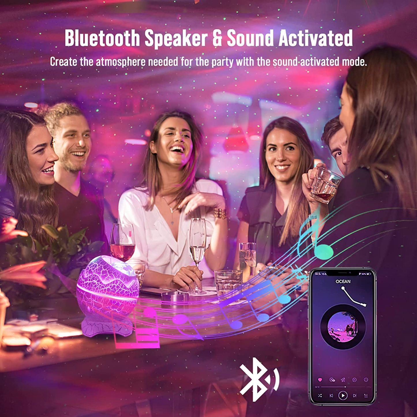 - 【Bluetooth Speaker & 360 Degree Projection】 - It connects to devices through Bluetooth so you can use it as a speaker to listen to your own music. In turn it would be possible to link this to the sound activated flicker-mode by using the remote, provides a great ambiance for parties. it comes with a stand and you can position the projector so it covers the area you want, choose which part of the room the projection appears on.